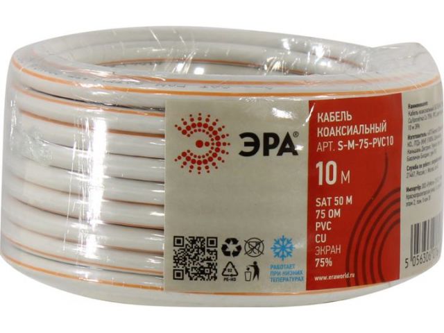 ЭРА S-M-75-PVC10 Кабель коаксиальный SAT 50 M, белый, бухта 10м