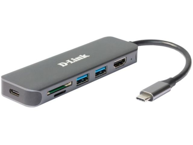 D-Link DUB-2327, A1A Кабель-адаптер USB-C -  2xUSB3.0+USB-C+HDMI+SD/microSD Card Reader
