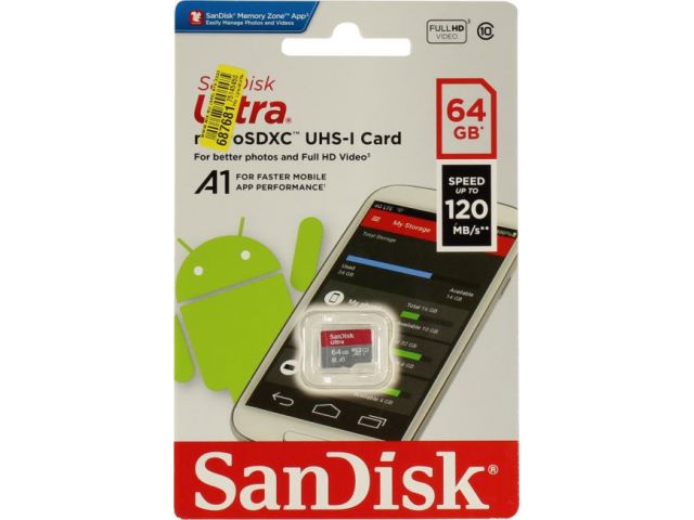 Карта Памяти SanDisk 64GB Ultra® microSDXC 120MB/s A1 Class 10 UHS-I