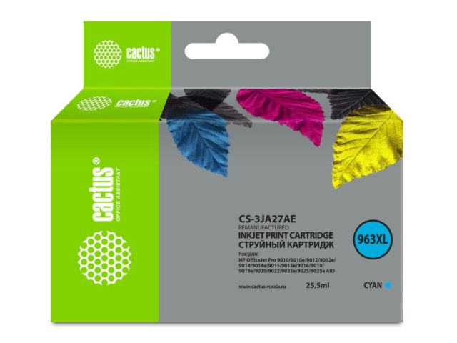 Картридж Cactus CS-3JA27AE (№963XL) Cyan для HP OfficeJet Pro 9010/9013/9020/9023 (восстановлен из б/у)