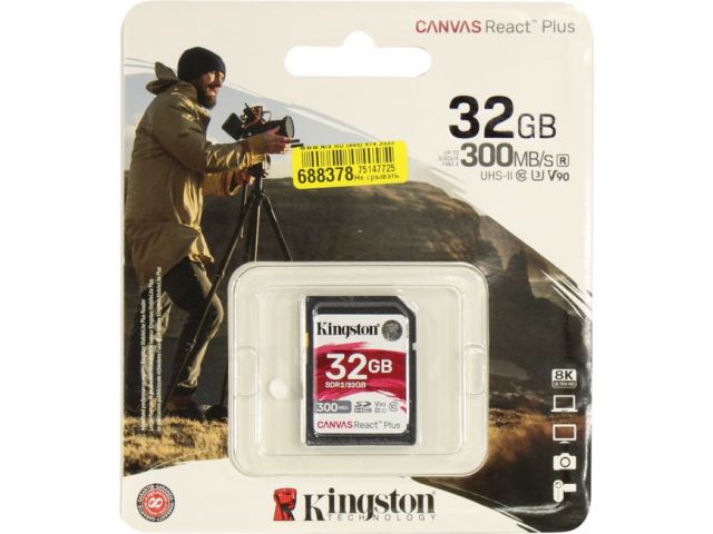 Карта памяти Kingston Canvas React Plus SDR2/32GB SDHC V90, UHS-II Class 3 (U3), Class 10 32 ГБ