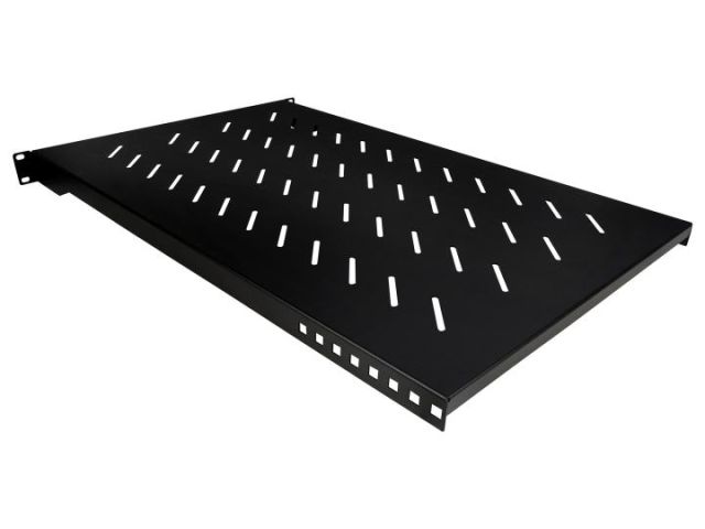 Важным функциональным преимуществом является перфорированная структура всей поверхности полки. Многочисленные отверстия выполняют сразу несколько критически важных задач. Во-первых, они обеспечивают эффективную вентиляцию размещенного оборудования, способствуя постоянному и равномерному отводу тепла и предотвращая риск перегрева. Во-вторых, такая конструкция позволяет беспрепятственно пропускать через себя кабели, что помогает поддерживать идеальный порядок внутри шкафа и облегчает процесс коммутации. Элегантный черный цвет изделия не только придает ему современный и строгий вид, но и гармонично сочетается с большинством существующих стоек, поддерживая единую эстетику оборудования.