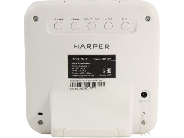 HARPER HCLK-2060 White Olive Радиобудильник (FM/AM, 1.2  LED,2xAAA/230V)