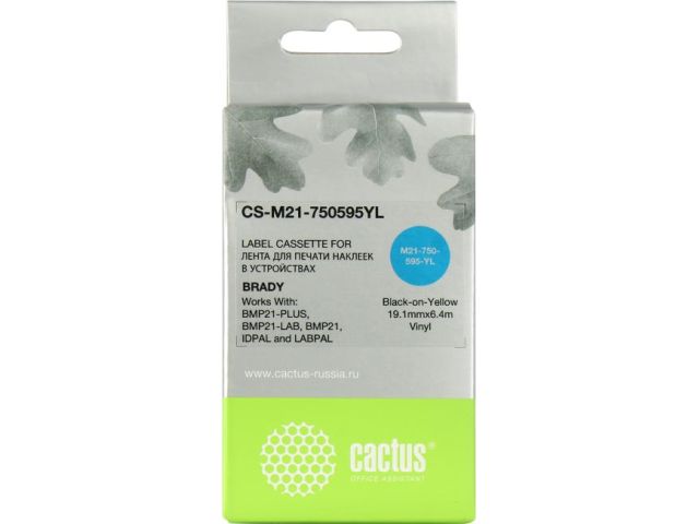 Cactus CS-M21-750595YL лента для печати этикеток (ширина 19.1мм, 6.4м, Black on Yellow) для Brady BMP21-PLUS