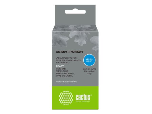 Cactus CS-M21-375595WH лента для печати этикеток (ширина 9.5мм, 6.4м, Black on White) для Brady BMP21