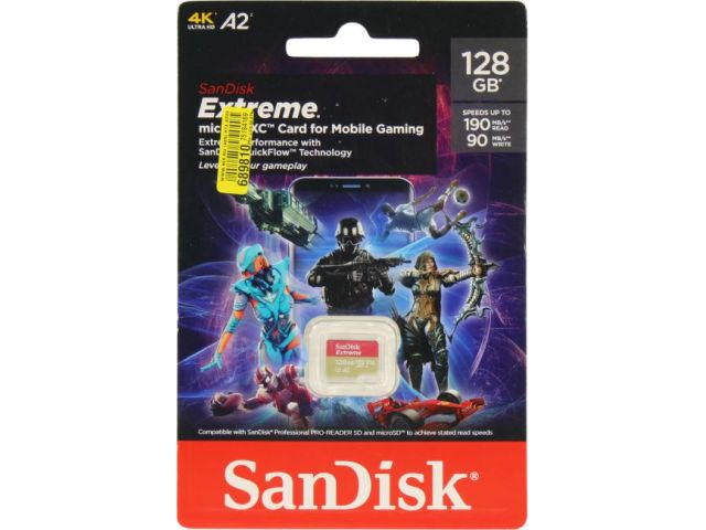 SanDisk Extreme SDSQXAA-128G-GN6GN microSDXC Memory Card 128Gb UHS-I U3 V30 A2