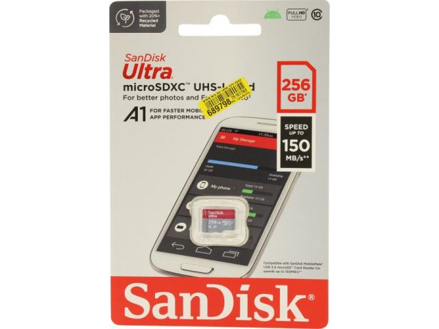 Карта памяти SanDisk Ultra SDSQUAC-256G-GN6MN microSDXC A1, UHS-I Class 1 (U1), Class 10 256 ГБ