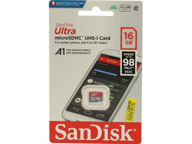 Карта памяти SanDisk Ultra SDSQUAR-016G-GN6MN microSDXC A1, UHS-I Class 1 (U1), Class 10 16 ГБ