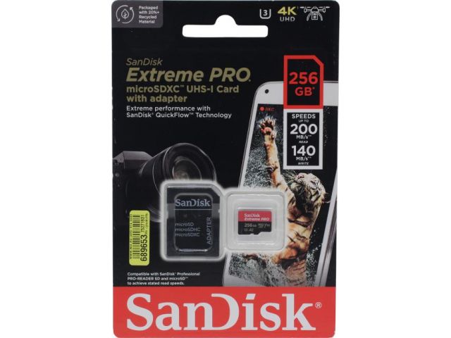 Карта памяти Sandisk Extreme Pro microSDXC 256GB + SD Adapter + Rescue Pro Deluxe 200MB/s