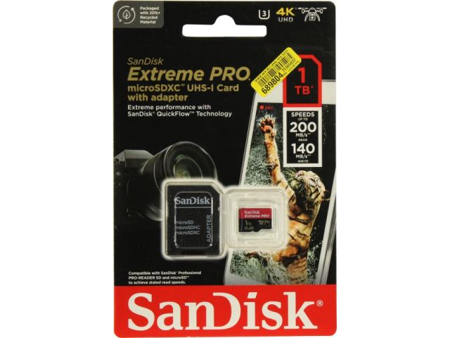 Карта памяти SanDisk Extreme Pro microSD UHS I Card 1TB for 4K Video on Smartphones, Action Cams & Drones 200MB/s Read, 140MB/s Write, Lifetime Warranty