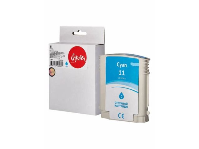 Струйный картридж Sakura C4836A (№11 Cyan) для HP Business Inkjet 1200d/1200dn/1200dtn/1200dtwn/2300/2300dtn/2300n/2800/ 2800dt/2800dtn;Designjet 100plus/110plus nr/110plus/110plus r/111/70;Color Inkjet cp1700/cp1700d/1700ps;Officejet 9110/9120/9130 AIO;Officejet Pro K850/K850dn Color, водорастворимый тип чернил, голубой, 29 мл., 2350 к.