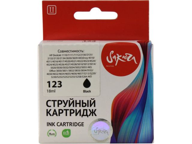 Картридж SAKURA SIF6V17AE (№123) Black для HP DJ 1110/1111/1112/2130/2131/5020/5055