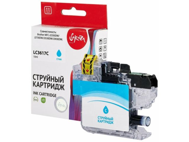Струйный картридж Sakura LC3617C для Brother MFC-J2330DW/J2730DW/J3530DW/J3930DW;, пигментный тип чернил, голубой, 10 мл., 550 к.