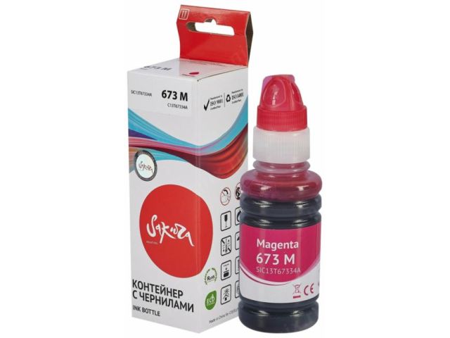 Контейнер с чернилами Sakura C13T67334A (673 M) для Epson Inkjet Photo L800/L801/L810/L850, пурпурный, водорастворимый тип, 70 мл., 5400 к.