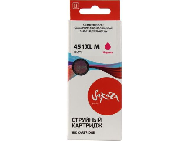 Струйный картридж Sakura 6474B001 (451XL M) для Canon PIXMA MG5440/5540/6340/6440/7140;MX924;iP7240, водорастворимый тип чернил, пурпурный, 10,2 мл., 660 к.