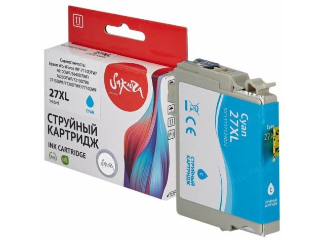 SIC13T27124022 Sakura C13T27124022 (27XL Cyan) для Epson WorkForce голубой, 14,6 мл., 1100 к.