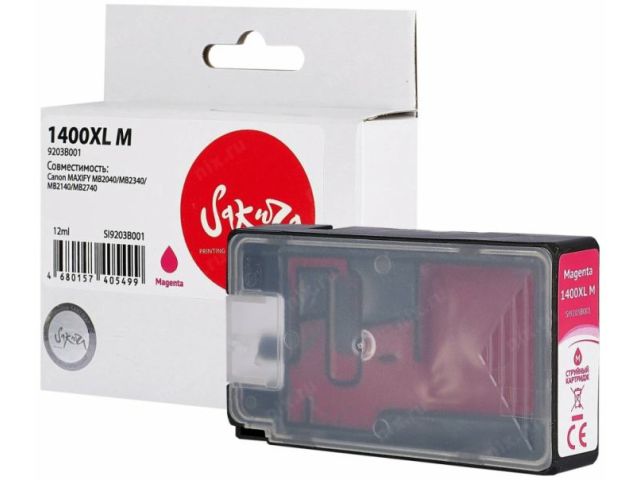 Струйный картридж Sakura 9203B001 (1400XL M) для Canon MAXIFY MB2040/MB2340/MB2140/MB2740, водорастворимый тип чернил, пурпурный, 12 мл., 900 к.