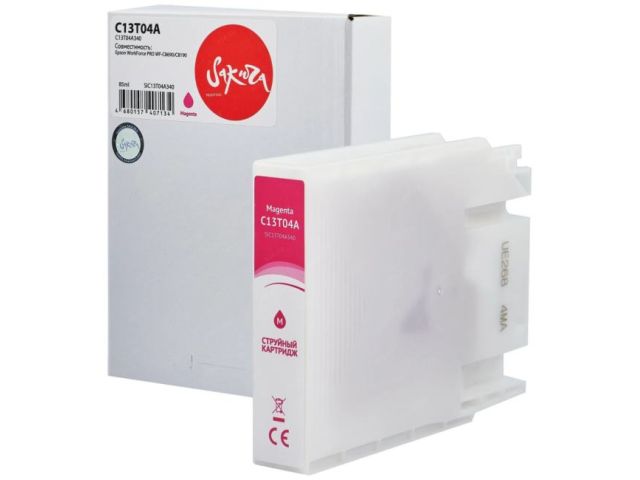 Струйный картридж Sakura C13T04A340 (C13T04A M) для Epson WorkForce PRO WF-C8690/C8190, пигментный тип чернил, пурпурный, 85 мл., 8000 к.