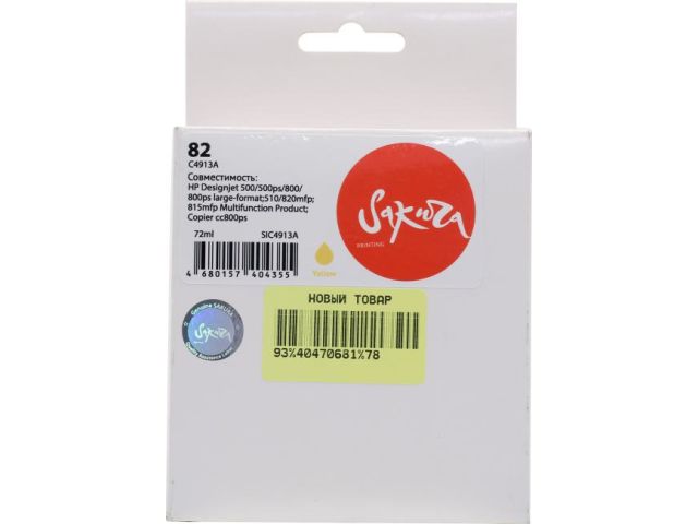 Картридж SAKURA SIC4913A (№82) Yellow для HP DesignJet 500/500PS/510/800/800ps/815mfp/820mfp