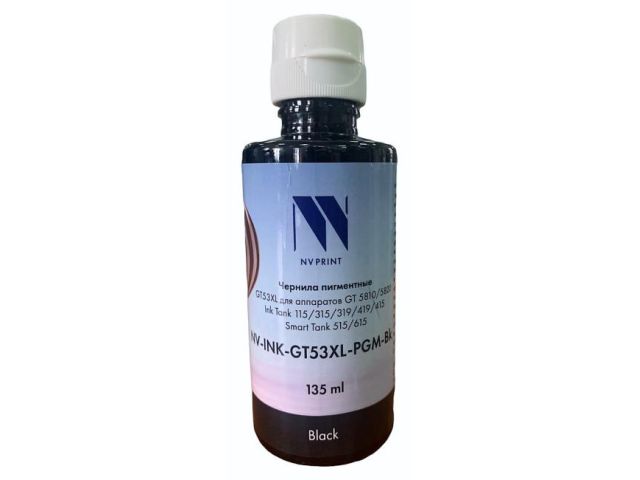 Чернила NV PRINT пигментные GT53XL для HP DeskJet GT 5810, 5820, 5822, Ink Tank 115, 310, 315, 319, 410,(135ml) Black