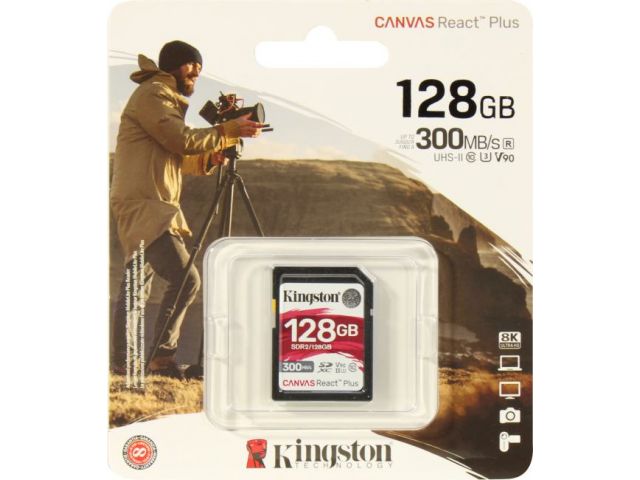 Карта памяти Kingston Canvas React Plus SDR2/128GB SDXC V90, UHS-II Class 3 (U3), Class 10 128 ГБ