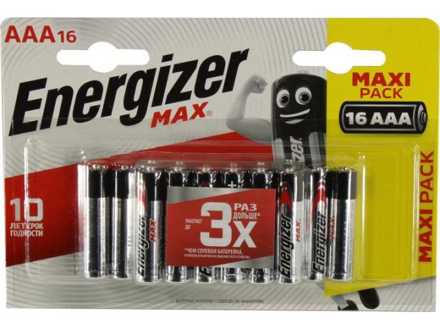 Energizer MAX (LR03) Size AAA , 1.5V, щелочной (alkaline)  уп. 16 шт