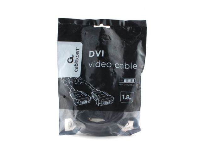 Кабель DVI-D dual link Cablexpert CC-DVI2L-BK-6, 25M/25M, 1.8м, CCS, черный, экран, феррит.кольца, пакет