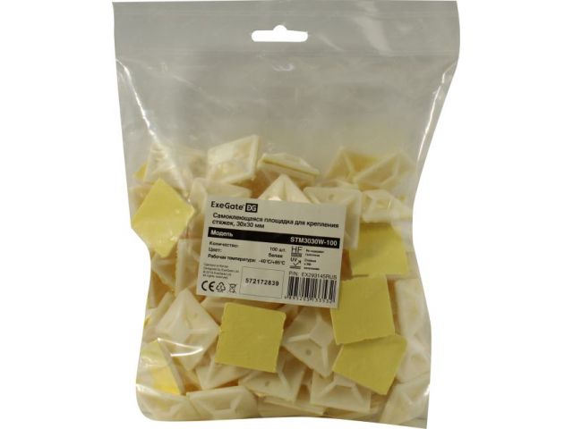 ExeGate STM3030W-100 Самокл. площадка для крепления стяжек, 30х30 мм, белая, уп-ка 100 шт EX293145RUS