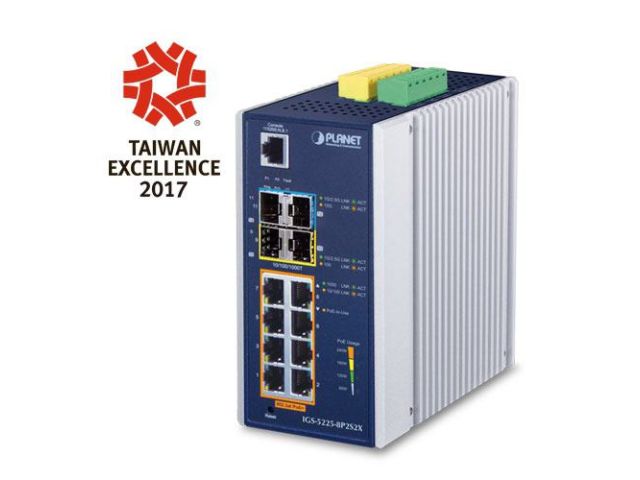 PLANET IGS-5225-8P2S2X IP30 Industrial L2+/L4 8-Port 1000T 802.3at PoE+ 2-port 100/1000X SFP + 2-port 10G SFP