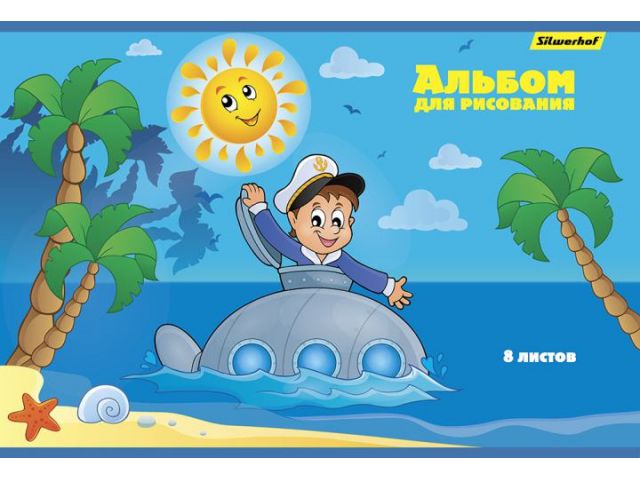 Альбом для рисования Silwerhof 485721 8л. A4 Мореплаватель 2диз. картон скрепка