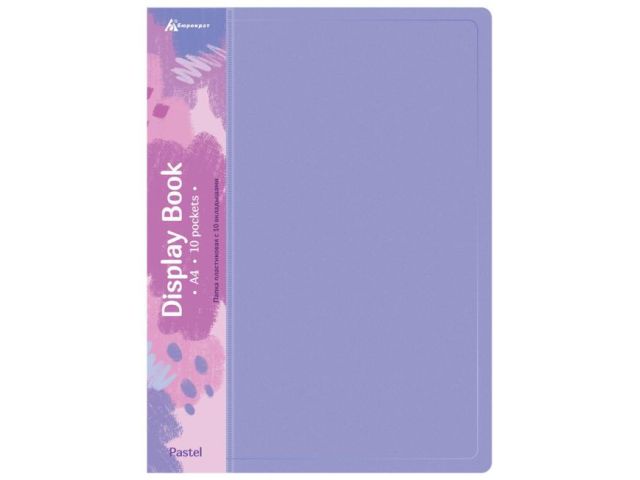 Папка с 10 прозр.вклад. Бюрократ Pastel PAST10VIO A4 пластик 0.5мм торц.карм с бум. встав фиолетовый