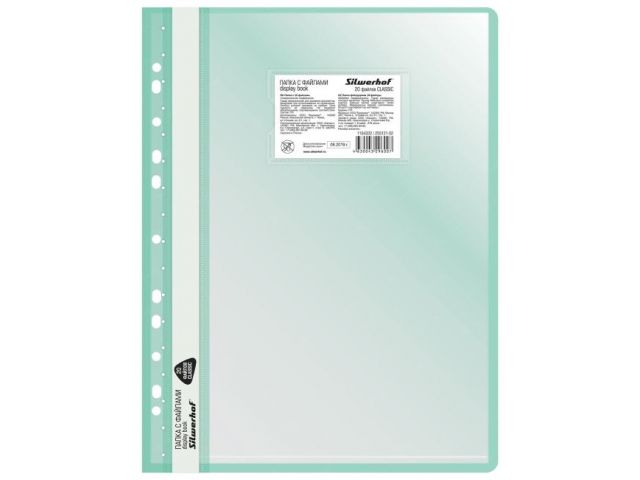 255120-04 Папка-скоросшиватель Silwerhof A4 прозрач.верх.лист 10 вкладышей боков.перф. полипропилен зеленый