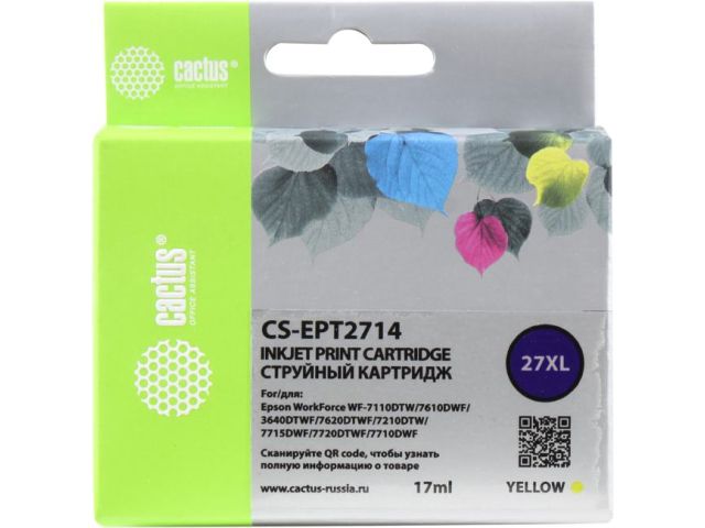Картридж Cactus CS-EPT2714 (27XL) Yellow для Epson WorkForceWF-3620/3640/7110/7610/7620