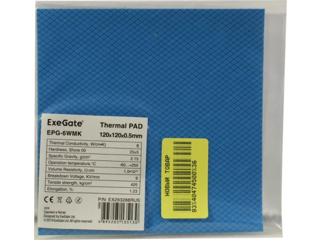 ExeGate EPG-6WMK  EX293288RUS Термопрокладка 120x120x0.5мм