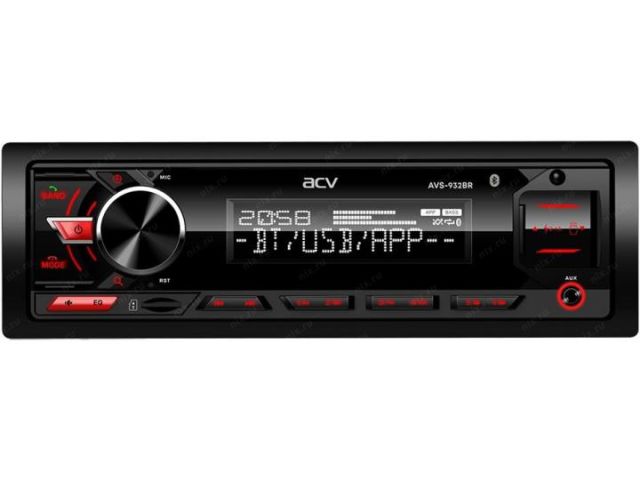ACV AVS-932BR (1DIN/красная/BT/2USB/AUX/SD/FM/2RCA/QC/4*50)