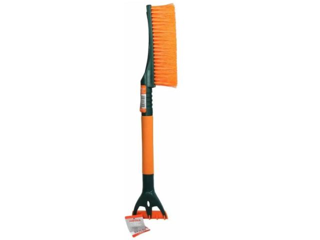 LI-SA LS211 Щетка для снега cо скребком поролоновая ручка, расщепленная щетина, оранжево-зеленая (61см) 44386