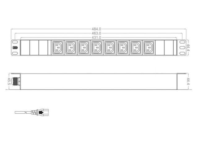 Hyperline SHT19-8IEC-2.5IEC Блок силовых розеток 19 , 8 розеток IEC320 C13