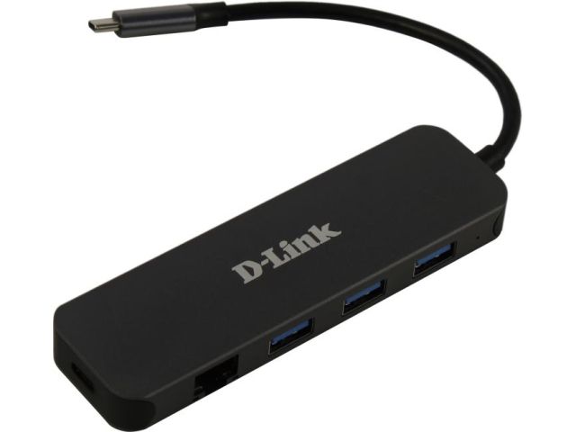D-Link DUB-2334, A1A  Кабель-адаптер USB-C - 3xUSB3.0+PD+RJ45