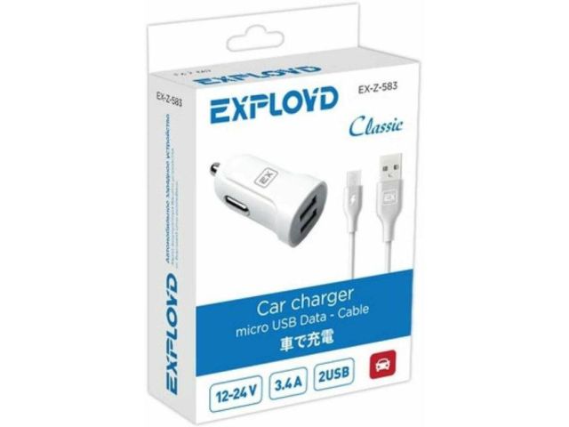 EXPLOYD EX-Z-583 micro USB 3.4А 2.4А+1А 2хUSB белый Classic