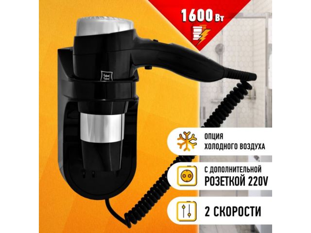 0405.013 Фен Puff 1600ВlB 1600Вт черный/серебристый