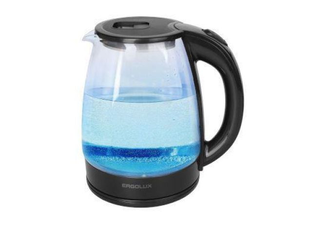 Электрочайник Ergolux ELX-KG06-C02 стеклянный черный, 1.8л.