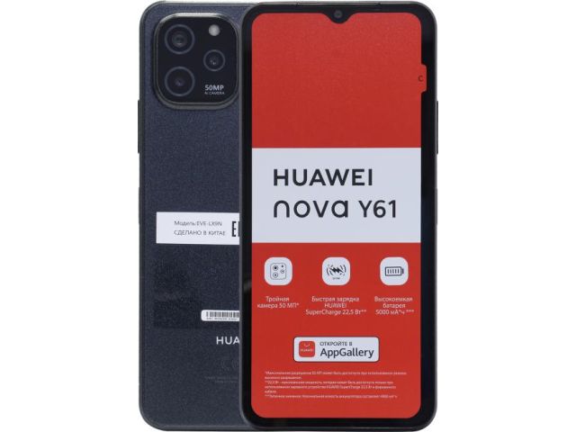 Huawei nova Y61 4/64Gb EVE-LX9N Midnight Black (2GHz, 3GB, 6.52 1600x720, 4G+WiFi+BT, 64Gb+microSD, 50+2+2Mpx)