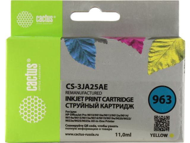 Картридж Cactus CS-3JA25AE (№963) Yellow для HP OfficeJet 9010/9012/9013/9014 (восстановлен из б/у)