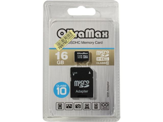 OltraMax OM016GCSDHC10 microSDHC 16Gb Class10 + microSD-- SD Adapter