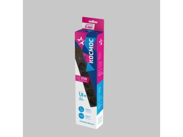 Сетевой удлинитель Космос FKsm1.8m-5g(B)USB