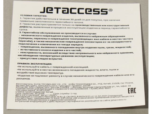 JETACCESS JA-HV08 Silver Кабель-адаптер USB-C -- RJ45
