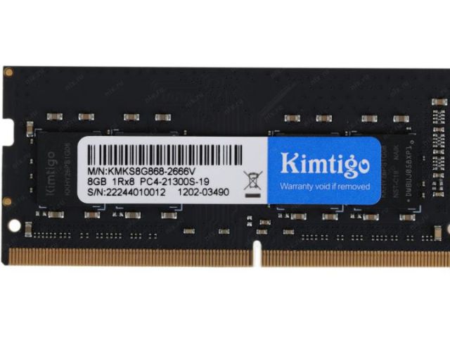 Память DDR4 8Gb 2666MHz Kimtigo KMKS8G8682666 RTL PC4-21300 CL19 SO-DIMM 260-pin 1.2В single rank