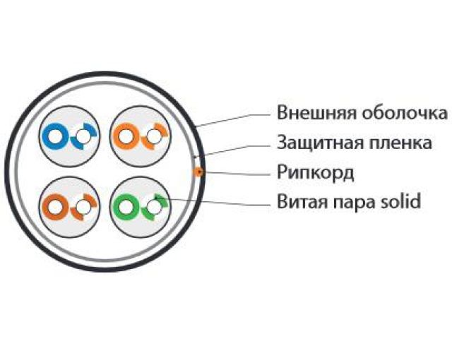 49127 Hyperline UUTP4-C5E-S24-OUT-PE-BK-100 (100 м) , неэкранированный U/UTP, категория 5e, 4 пары (24 AWG), одножильны