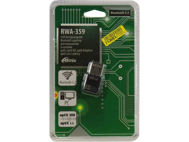 Ritmix RWA-359 Bluetooth 5.2 USB Adaptor для наушников и колонок