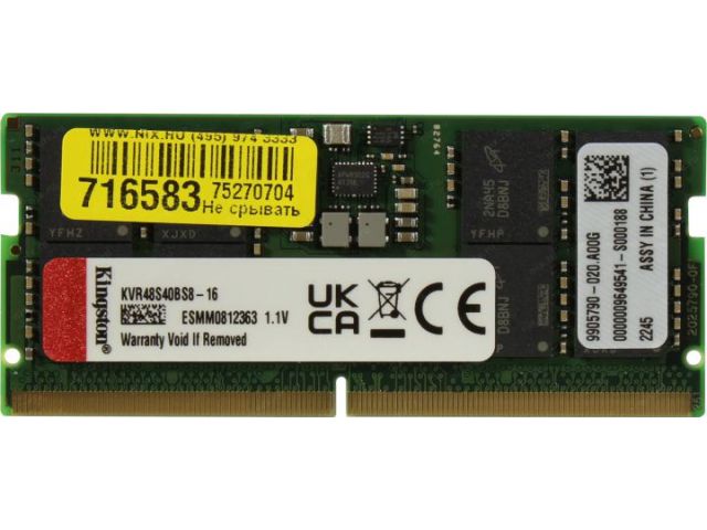 Kingston KVR48S40BS8-16 DDR5 SODIMM 16Gb PC5-38400  CL40 (for NoteBook)